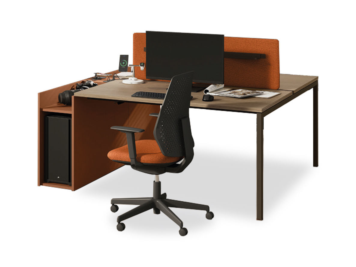 Possono essere completate con una pannellatura (OPTIONAL) in lamiera di acciaio sp. 1 mm. con un lato fisso ed un lato ispezionabile uso “WIRE MANAGER” per il contenimento di cablaggi e relative apparecchiature ed eccedenze. Tutta la struttura è verniciata a polveri epossidiche nei colori: BIANCO, NERO, VERDE, GRIGIO GHIACCIO, TABACCO, CAPPUCCINO. Le scrivanie singole, oltre che su due gambe a ponte, possono avere una sola gamba ed essere aggregate a comby, mobile di servizio e libreria metallica tramite staffe metalliche idonee al tipo di aggancio richiesto. I bench possono essere aggregati soltanto a comby. I bench possono essere completati con articoli porta-accessori nel seguente modo: