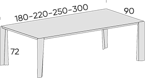 · pannello in alveolare di alluminio e HDF con bordo massellato in multistrato, impiallacciato in noce Canaletto, in frassino tinto Essenza (Frassino Nero, Frassino Antracite, Frassino Moro, Frassino Miele, Frassino Lino) oppure rivestito e bordato in materiale sintetico Laccato Opaco ad eccimeri che aumenta la resistenza della superficie al graffio. Il piano è sempre in tinta con le gambe.